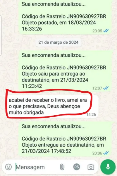 Você receberá o seu livro via Correios no endereço cadastrado na hora da compra. Devido a grande demanda, o prazo médio de entrega é de 7 a 15 dias. Frete grátis para todo Brasil.