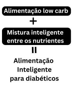 Alimentação inteligente para d💉abéticos é a junção da alimentação low carb (baixo carboidrato) com a interação (mistura) entre os alimentos visando a diminuição do índice glicêmico da refeição. Por exemplo: comer uma cenoura cozida isoladamente não pode, mas se for consumida com carnes que são fontes de proteína, o índice glicêmico da cenoura baixa consideravelmente. A mistura com as carnes (proteína) transforma a cenoura em um alimento adequado para o consumo do d💉abético.