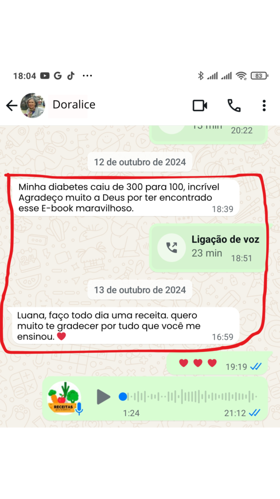 Nosso cardápio contém receitas baseadas criteriosamente nessas interações assertivas, que com o tempo fazem a diabetes diminuir muito.